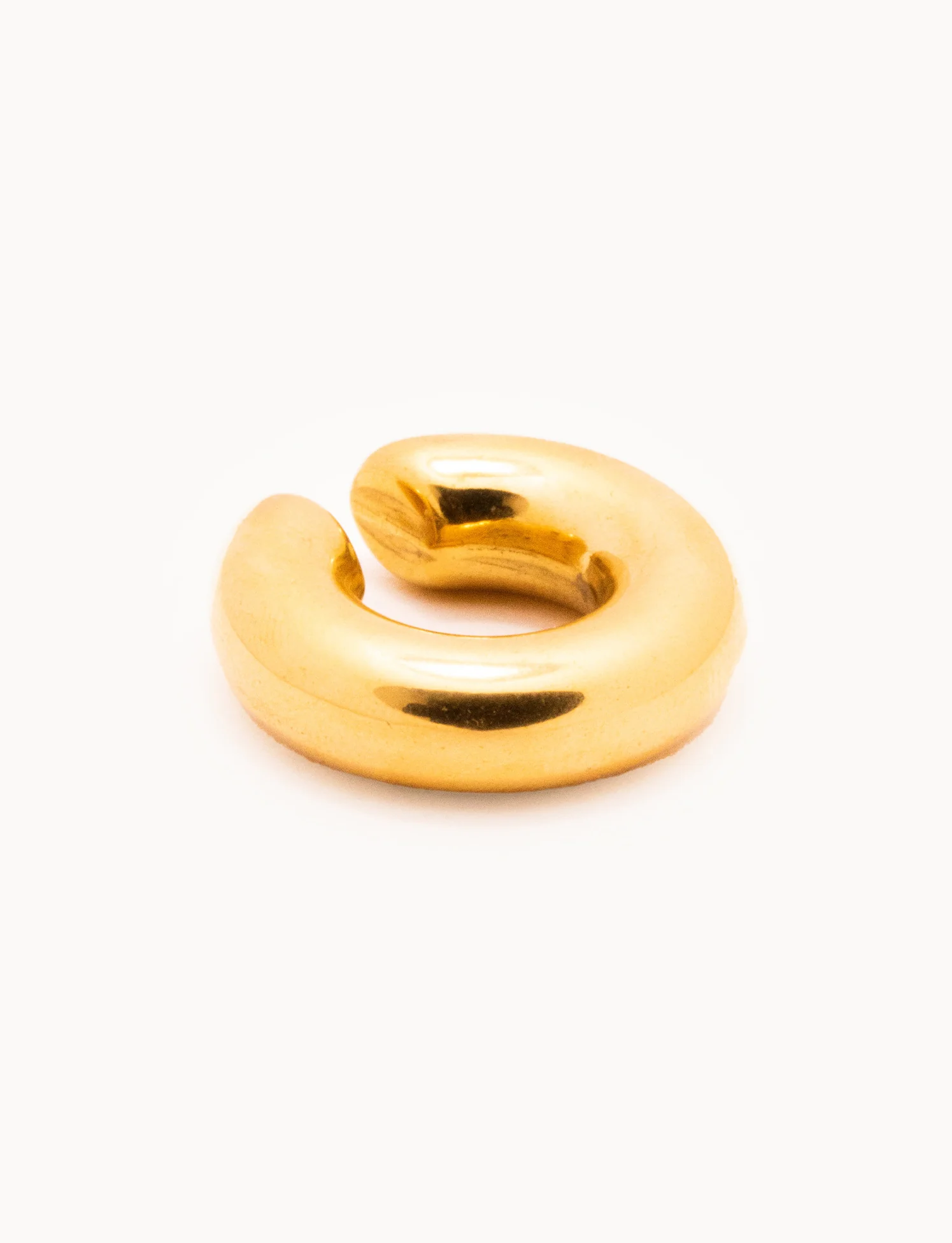 Ecco il nostro orecchino cuff a cerchio chubby senza chiusura. La sua forma senza chiusura permette di essere posizionato lungo tutto l'orecchio dove più si preferisce.